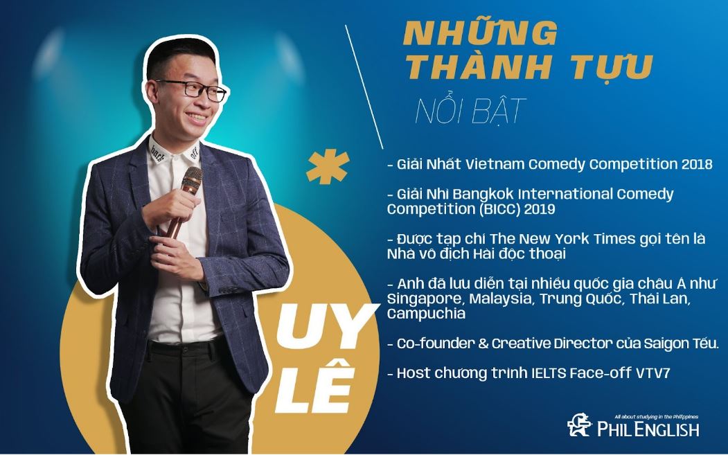 Có thể nói, bên cạnh khiếu hài hước, sự sáng tạo trong nội dung truyền tải, Uy Lê sở hữu một nền tảng ngoại ngữ rất vững chắc, làm tiền đề cho sự thành công của mình trong lĩnh vực này. Chính vì thế, Uy Lê là người mà Phil English sẽ “chọn mặt gửi vàng”, trở thành khách mời đặc biệt của phần Talkshow chủ đề “Tiếng Anh đổi đời – Tiếng Anh đã làm thay đổi cuộc đời tôi” tại Hội thảo du học Philippines 2023.